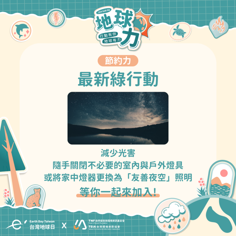 任何問題與指教,歡迎寫信到service@tnf.org.tw 和地球日小組聯繫,感謝。